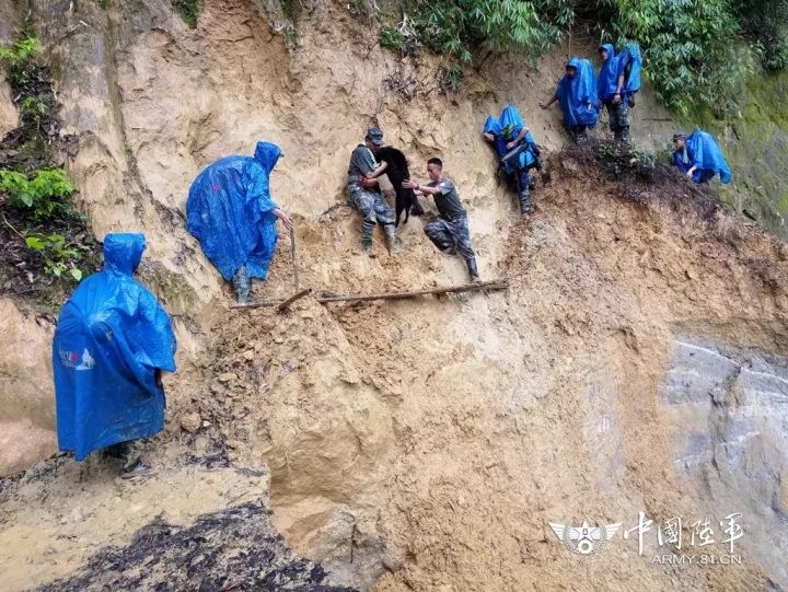 ▲梁昆煒和戰(zhàn)友們正在經(jīng)過塌方區(qū)。