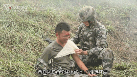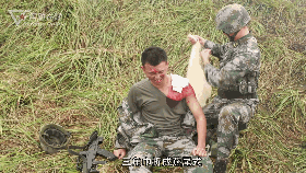 今天,醫(yī)務(wù)兵為大家示范三角巾燕尾式包扎法,適用于肩、臀和側(cè)腹等部位創(chuàng)傷。