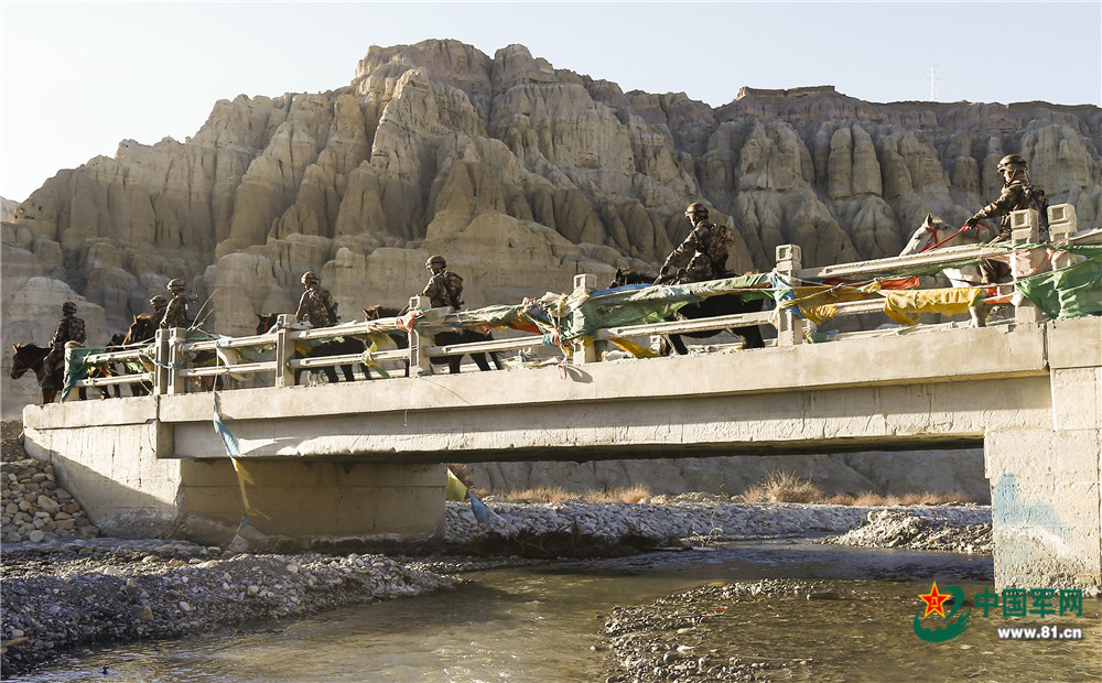 即將退伍的老兵乘馬通過大橋。(劉曉東攝)