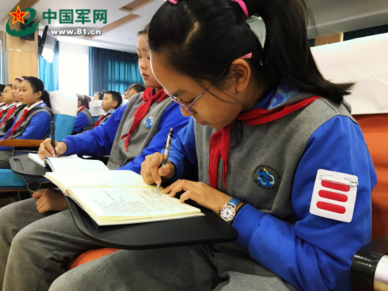 演播現(xiàn)場(chǎng)一雙雙好奇的眼睛目不轉(zhuǎn)睛地凝視臺(tái)上的英模代表,這些稚嫩的面孔上有興奮,更多的是期待,期待那邈如曠世的戰(zhàn)斗故事,期待那沉寂在和平年代的戰(zhàn)斗精神。一段段被塵封的感人至深的戰(zhàn)斗故事,一個(gè)個(gè)被遺忘的氣沖霄漢的戰(zhàn)斗英雄從硝云彈雨的戰(zhàn)場(chǎng)上,從30多年歷史的長(zhǎng)河里,從英雄史光柱、英模胡國(guó)橋的口中,從孩子們?nèi)绯钡恼坡曋袥坝颗炫鹊丶な幎鴣恚矒糁⒆觽円庾R(shí)初萌的心……戰(zhàn)士參戰(zhàn)前的遺書讓孩子們熱淚盈眶;英雄身負(fù)重傷不下火線戰(zhàn)斗到生命最后一刻的精神令孩子們震撼無比;戰(zhàn)士腰間的最后一顆光榮彈使孩子們唏噓不已;面對(duì)生死的戰(zhàn)友情和協(xié)作精神振奮人心;英雄母親的家書讓孩子們?cè)俣嚷錅I……
