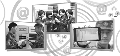 該團(tuán)官兵使用手機(jī)掠影。 孟令軍攝、姜紫微合成