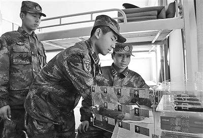 該團(tuán)戰(zhàn)士從手機(jī)存放盒中領(lǐng)取手機(jī)。徐 振攝