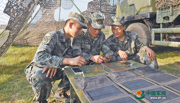 “自從用上了太陽能蓄電池,我們再也不用為手機充電煩惱啦……”8月17日,記者在陸軍第20集團軍某旅野營駐訓點看到,連隊自由活動時間,官兵們拿出一塊書本大小的太陽能板,放到太陽光下,為自己的手機充電。該旅軍務科科長何俊偉說:“為連隊配發(fā)便攜式太陽能蓄電池,有效解決了官兵在野外使用手機的后顧之憂,深受官兵好評。”