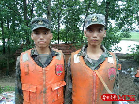 這張照片拍攝于7月4日,地點位于湖北省黃梅縣太白湖大堤。坐在最前面吃饅頭的戰(zhàn)士,名叫謝永富,是中部戰(zhàn)區(qū)陸軍某舟橋旅班長。而他的雙胞胎弟弟謝永貴,同樣是該連一名班長。兄弟倆是廣東清遠人,父母取名永富永貴意為希望倆兄弟永遠富貴,希望他們一個從商一個從政,而他倆毅然選擇了報國參軍。2010年9月,剛入伍不到一年的他們就參加了漢川抗洪,救援中兄弟倆與戰(zhàn)友們一道連續(xù)奮戰(zhàn)兩天三夜,圓滿完成了救援任務。入伍七年以來,通過努力拼搏、刻苦訓練,兄弟倆成長為專業(yè)技術能手,并成為軍事素質過硬的班長,哥哥是一名熟練的舟橋作業(yè)手,弟弟是一名沖鋒舟操作手。他們倆還在旅基礎課目比武中大顯身手,哥哥繩索連接全旅第二,弟弟四百米障礙全旅第三。由于綜合素質過硬,帶領所屬人員完成任務出色,他倆先后入了黨。