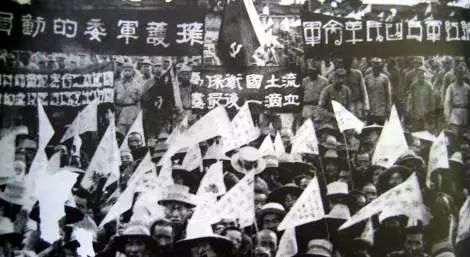 紅軍改編為八路軍后,舉行抗日誓師大會。
