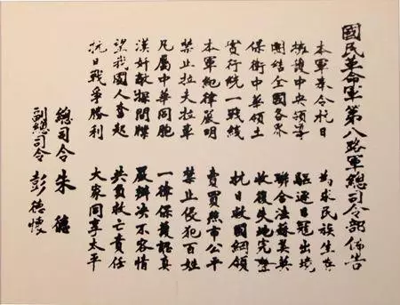1937年9月11日,國民政府軍事委員會按全國陸海空軍新的戰(zhàn)斗序列,下達(dá)命令:將八路軍改稱國民革命軍第十八集團(tuán)軍,八路軍總部改稱第十八集團(tuán)軍總司令部(簡稱“集總”),朱德改任總司令,彭德懷改任副總司令。9月14日,朱德、彭德懷發(fā)布八路軍改為第十八集團(tuán)軍的通令。但此后仍習(xí)慣稱為“八路軍”。