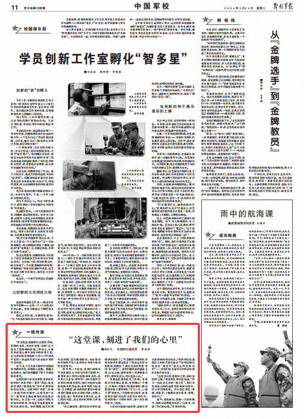 臺(tái)下,幾十名身著不同軍種制服的學(xué)員眼神專注,時(shí)而陷入沉思。跟隨王旭的講述,他們仿佛回到了那個(gè)風(fēng)雨如磐的年代。