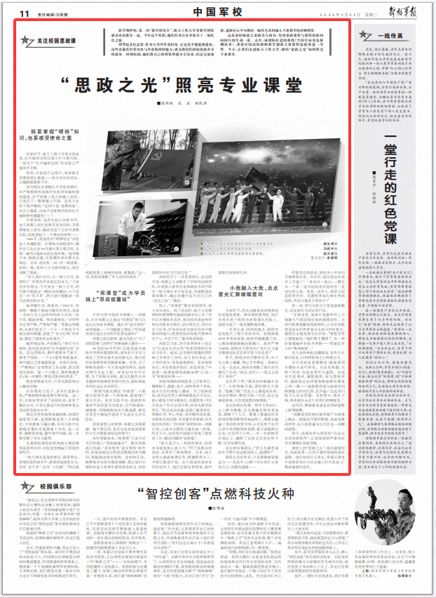 課堂上的“思政之光”,指引著楊紹杰、欒成龍等一眾學(xué)子強軍報國的成長道路。他們?nèi)缤c點星光,帶著從課堂中汲取的知識與信念融入時代洪流,匯聚成璀璨的星河。