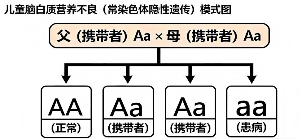 兒童腦白質(zhì)營養(yǎng)不良是一組罕見的遺傳性神經(jīng)代謝疾病 ,核心問題是大腦白質(zhì)(神經(jīng)纖維的“絕緣外衣”髓鞘)發(fā)育異?;蚴軗p,導致神經(jīng)信號傳遞受阻,進而影響運動、認知等功能,多為常染色體隱性遺傳。