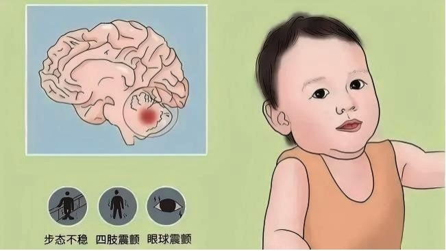 運動功能異常:早期可能走路不穩(wěn)、易摔跤、肌張力異常,后期逐漸出現(xiàn)肢體痙攣、癱瘓、吞咽困難,甚至無法站立坐起。