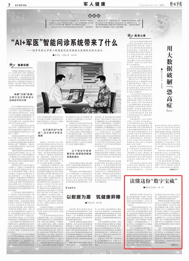 當每一份體檢單都被讀懂、被用足,當每一個異常指標都能觸發(fā)及時的干預行動,官兵的健康就不再是靜態(tài)的醫(yī)療檔案,而是練兵備戰(zhàn)中堅實、動態(tài)的支撐力量。這正是用好體檢數(shù)據(jù)的作用:讓健康優(yōu)勢成為戰(zhàn)斗力優(yōu)勢的有機組成,讓強健體魄成為決勝戰(zhàn)場的最硬底氣。
