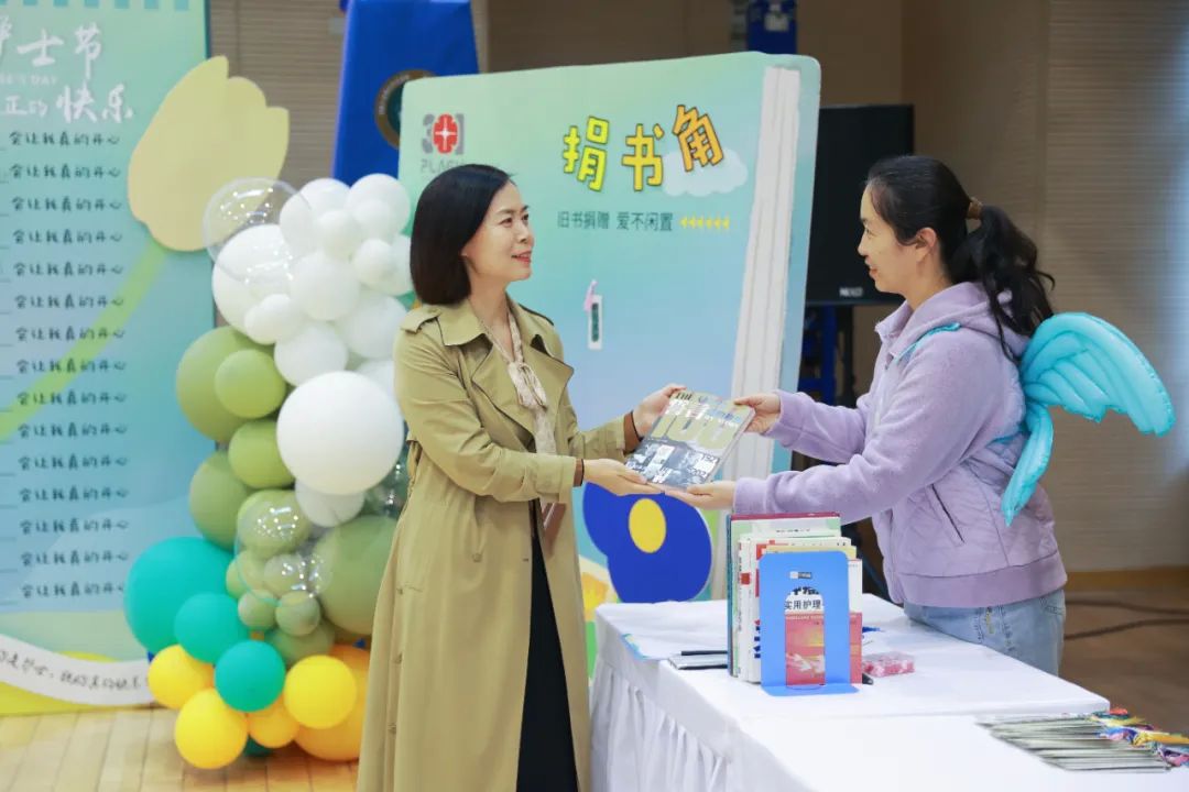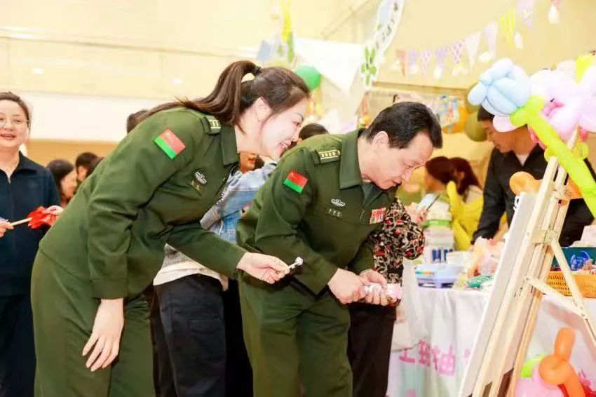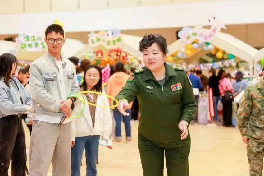 游園活動設(shè)置了簽到留影、循環(huán)市集、減壓游戲、舊書捐贈、茶點休閑等多個區(qū)域,吸引了中心醫(yī)護(hù)人員、營區(qū)官兵家屬近500余人“圍觀”。