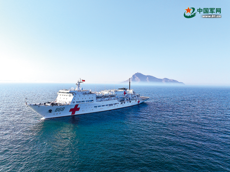 初夏黃海,波濤翻涌。一艘“大白船”破浪前行,潔白船身上的鮮紅十字和“868”舷號,分外醒目。