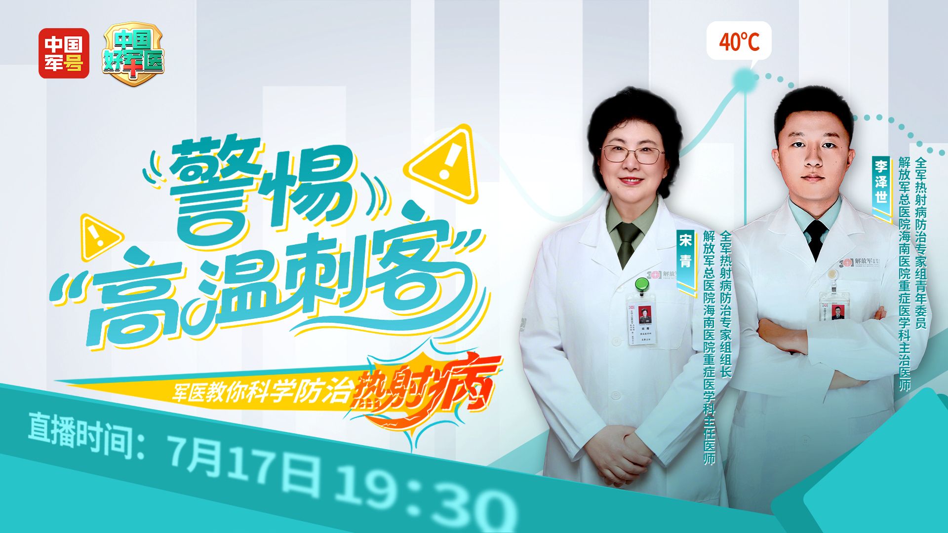 “白天太熱,晚上戶外運動是不是就能避免熱射病?”“得了熱射病第一時間怎么救治?”……如果您有相關(guān)問題,歡迎關(guān)注7月17日晚19:30《中國好軍醫(yī)》直播間,宋青主任醫(yī)師將在線答疑解惑。