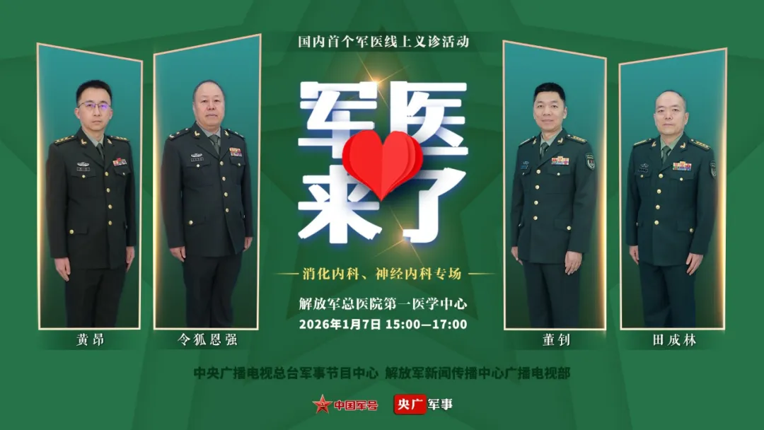 《軍醫(yī)來了》第十一場直播中,將邀請中國人民解放軍總醫(yī)院第一醫(yī)學(xué)中心消化內(nèi)科醫(yī)學(xué)部、神經(jīng)內(nèi)科醫(yī)學(xué)部的知名專家開展健康咨詢和線上義診。