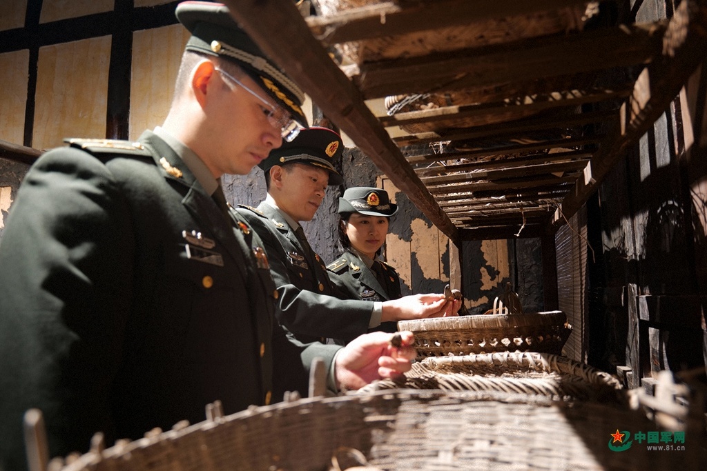 官兵現(xiàn)地觸摸紅軍前輩的醫(yī)療用品。李柳靜 攝