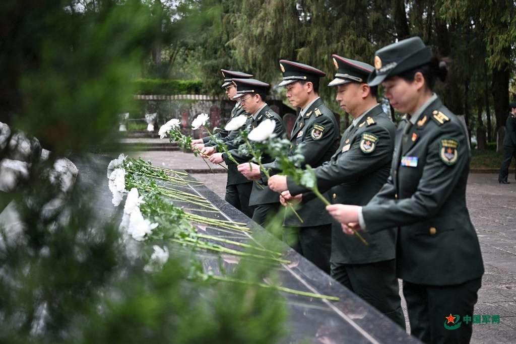 官兵向紅軍烈士敬獻(xiàn)鮮花。李柳靜 攝