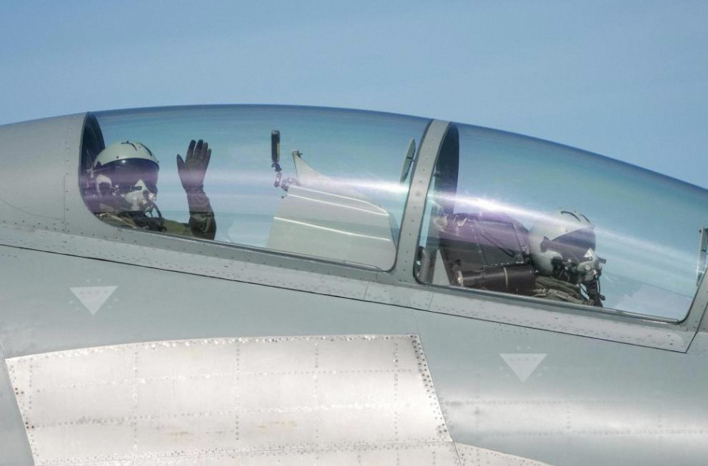 ↑2025年9月19日,殲-16飛行員在完成表演后向觀眾揮手致意。(新華社記者 顏麟蘊(yùn) 攝)