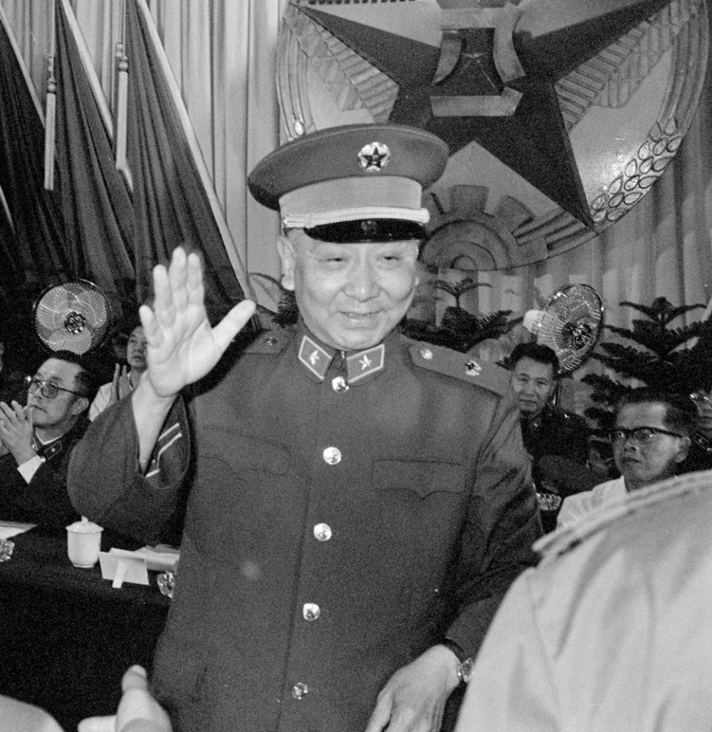 ↑1987年10月11日,時(shí)任空軍司令員王海向功臣代表祝賀。(新華社記者 熊春雷 攝)
