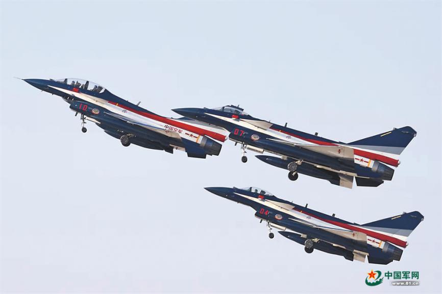空軍八一飛行表演隊(duì)組建以來,先后裝備殲-5、殲-6、殲教-5、殲-7EB、殲-7GB、殲-10、殲-10C表演機(jī),為180多個(gè)國家和地區(qū)的800多個(gè)代表團(tuán)進(jìn)行了800余次飛行表演,用多彩航跡架設(shè)傳遞和平的友誼橋梁,成為和平使者、文化使者、友誼使者。