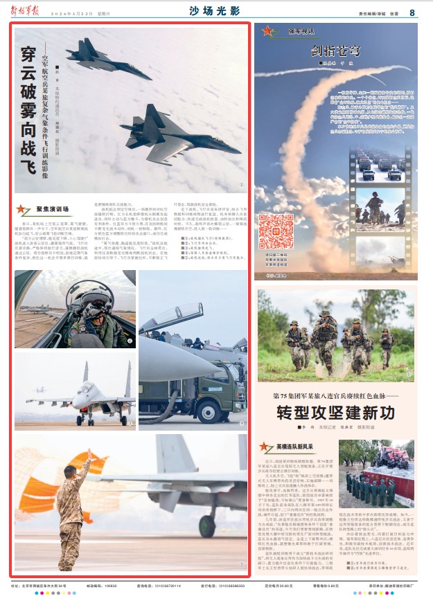 春日,某機(jī)場上空低云籠罩、霧氣蒙蒙。隨著指揮員一聲令下,空軍航空兵某旅數(shù)架戰(zhàn)機(jī)加力起飛,穿云破霧飛赴訓(xùn)練空域。