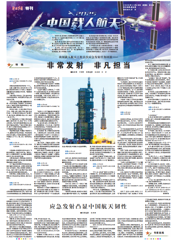 神舟二十二號發(fā)射任務(wù)是中國空間站建造以來首次以無人狀態(tài)發(fā)射載人飛船,也是中國載人航天工程實(shí)施以來的首次應(yīng)急發(fā)射,充分檢驗(yàn)了中國空間站應(yīng)急發(fā)射待命值班機(jī)制的完備性,也考核了應(yīng)急發(fā)射流程的科學(xué)性和合理性,凸顯了中國航天的韌性。就相關(guān)任務(wù)情況,解放軍報(bào)記者連線了酒泉衛(wèi)星發(fā)射中心專家賀鵬舉。