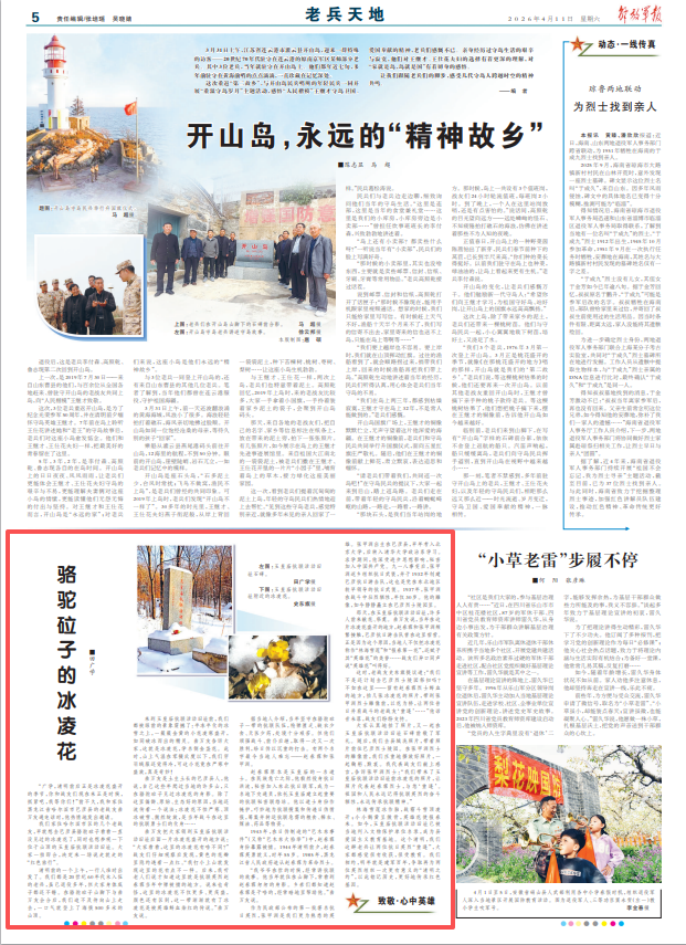 林海雪蓮冰作胎,戰(zhàn)霜斗雪頂凌開(kāi);小小鵝黃呈傲骨,英雄花使報(bào)春來(lái)。如今,玉皇廟抗聯(lián)活動(dòng)舊址已被當(dāng)?shù)亓腥胛奈锉Wo(hù)單位名錄,成為縣愛(ài)國(guó)主義教育基地。這個(gè)清明,我們這群老兵讓兩位抗日英烈“重逢”,大家都感覺(jué)很有收獲,很受教育。我們相約,明年就是建軍百年,爭(zhēng)取再為兩位英烈組織一次更有意義的“清明之約”,以此銘記歷史,更好地傳承紅色基因。