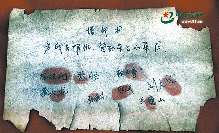 在第31集團(tuán)軍某團(tuán)一營(yíng)一連榮譽(yù)室里,一張印滿“黨員突擊隊(duì)”紅手印的請(qǐng)戰(zhàn)書(shū)格外醒目。這是該連1948年參加淮海戰(zhàn)役小宋莊戰(zhàn)斗的8名黨員留下來(lái)的。
