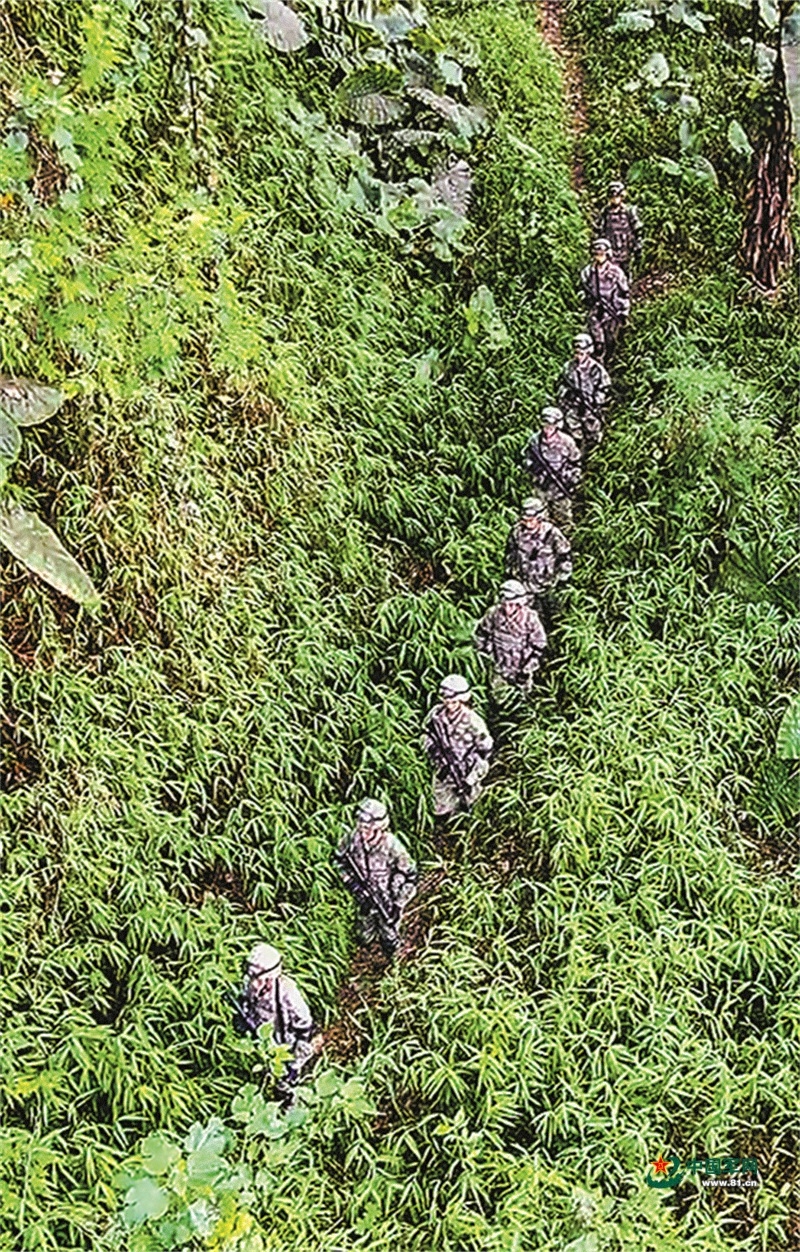 巡邏官兵穿越叢林。