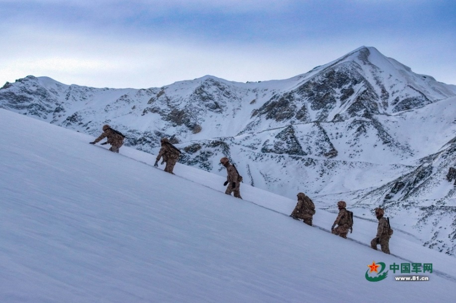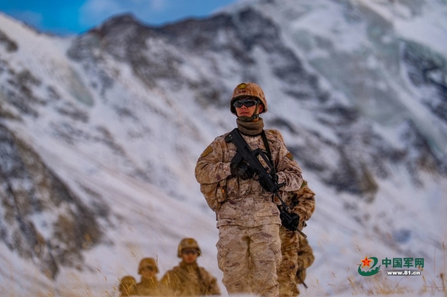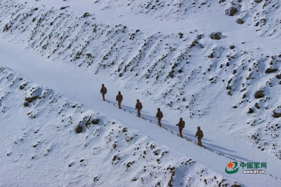 官兵在巡邏路上行進。馬文清 攝