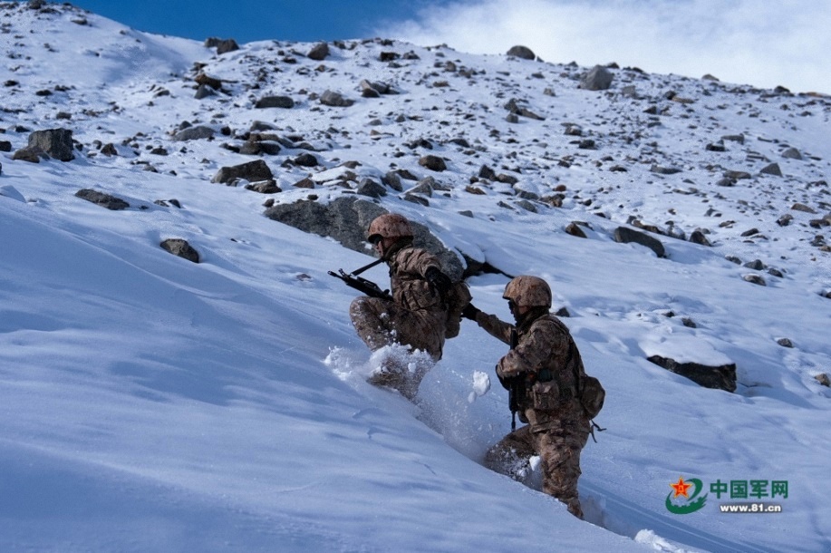 官兵艱難跋涉。馬文清 攝