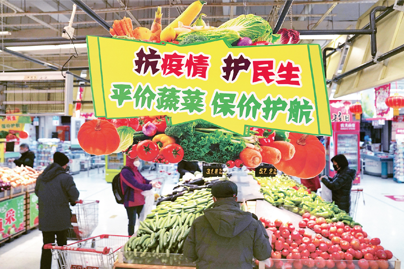 新冠肺炎疫情發(fā)生以來,全國各地努力做好保障和改善民生工作。圖為2020年2月4日,黑龍江省哈爾濱市市民在一家大型超市內(nèi)挑選蔬菜。 新華社記者 王建威/攝