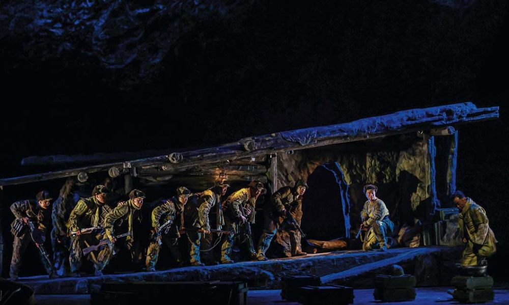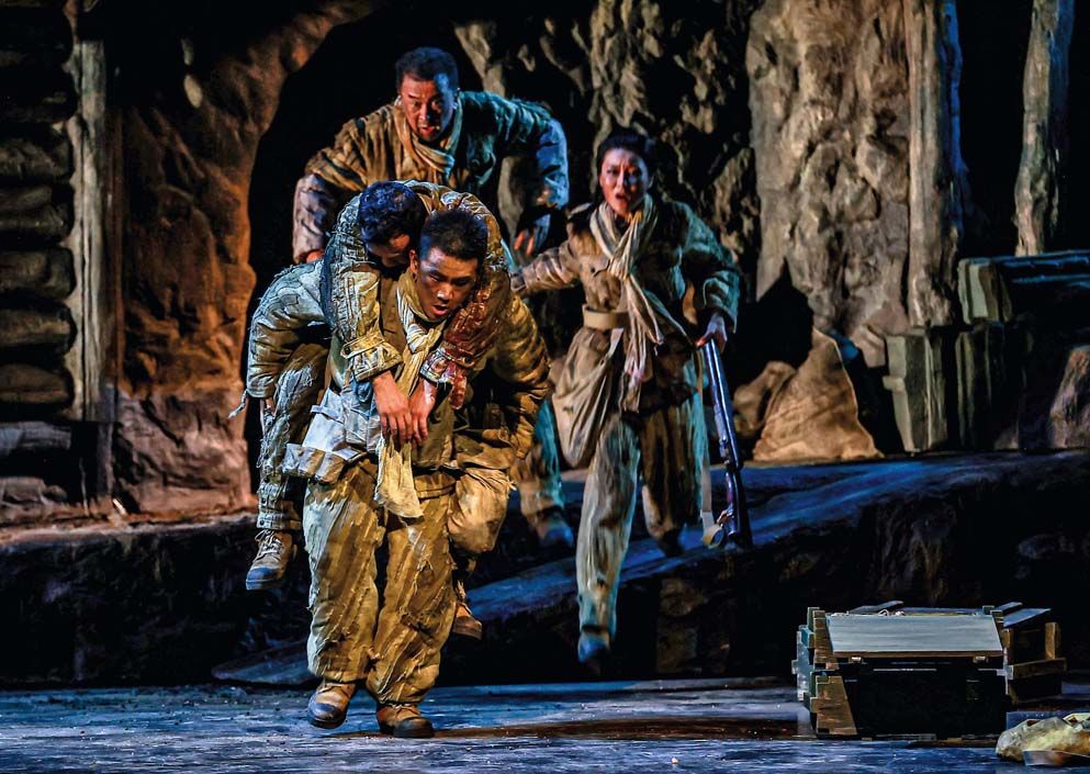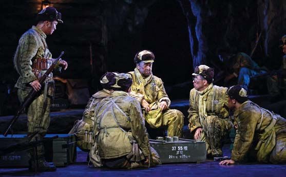 《上甘嶺》的動(dòng)作場(chǎng)面也讓觀(guān)眾看到了真把式。“演員要將軍事動(dòng)作轉(zhuǎn)換成舞臺(tái)動(dòng)作,不只要考慮美感,還要像軍人一樣靈敏。比如演員要拿著槍快速穿越一個(gè)很小的洞口,一開(kāi)始誰(shuí)都不能快速通過(guò),可現(xiàn)在大家都能像小豹子一樣‘啪’的一聲跑過(guò)去。沒(méi)有經(jīng)過(guò)長(zhǎng)時(shí)間刻苦訓(xùn)練,演員們是無(wú)法做到如此靈敏的?!崩顤|說(shuō)。