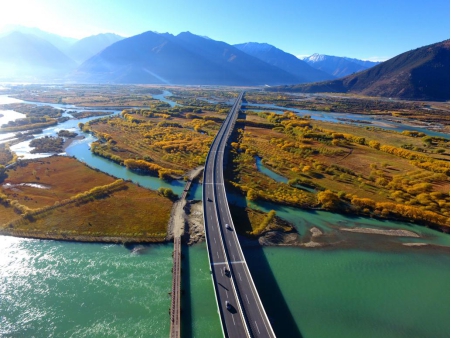 圖為林芝米林機(jī)場(chǎng)高等級(jí)公路。西藏自治區(qū)黨委宣傳部供圖