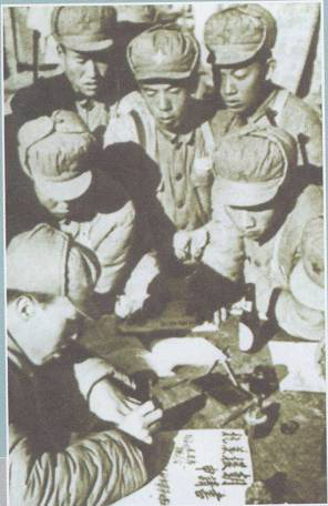 東北邊防軍官兵在起草抗美援朝申請書(資料圖片)