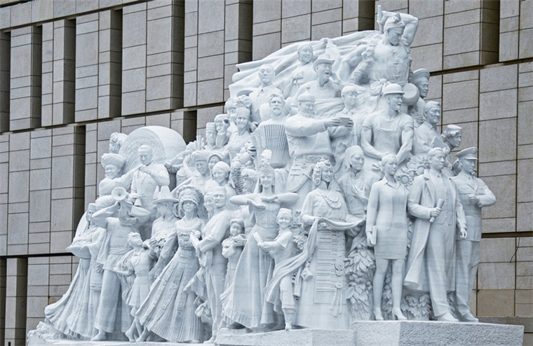 雕塑《偉業(yè)》共塑造65位人物形象,涵蓋不同群體、不同職業(yè),中間通過“火炬”和“旗幟”的形象進(jìn)行連接和升華,重點(diǎn)反映中國共產(chǎn)黨團(tuán)結(jié)帶領(lǐng)全國各族人民,堅(jiān)定“四個(gè)自信”,發(fā)奮圖強(qiáng)、艱苦奮斗,推動(dòng)中國特色社會(huì)主義事業(yè)不斷取得歷史性成就。 劉新武/攝