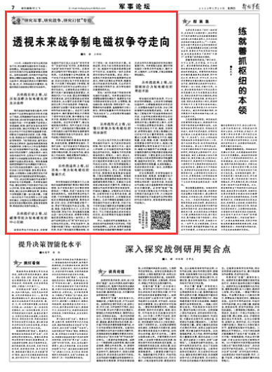 1904年,日俄戰(zhàn)爭中首次出現(xiàn)無線電干擾,標(biāo)志著制電磁權(quán)爭奪開始登上戰(zhàn)爭舞臺(tái)。制電磁權(quán)指的是作戰(zhàn)中在一定時(shí)空范圍內(nèi)對(duì)電磁頻譜領(lǐng)域的控制權(quán)。戰(zhàn)爭實(shí)踐表明,任何現(xiàn)代作戰(zhàn)行動(dòng)都難以擺脫電磁波的影響。信息化智能化戰(zhàn)爭中,制電磁權(quán)更成為支撐和制約陸、海、空、天、網(wǎng)等戰(zhàn)場的關(guān)鍵制權(quán),電磁優(yōu)勢成為戰(zhàn)場綜合制權(quán)的先決條件。