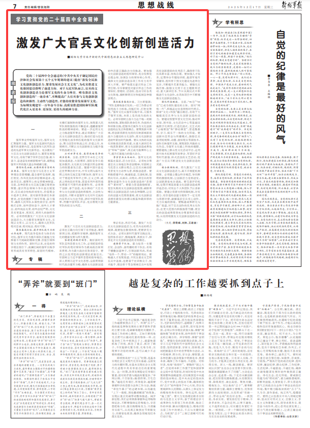 激發(fā)廣大官兵文化創(chuàng)新創(chuàng)造活力
