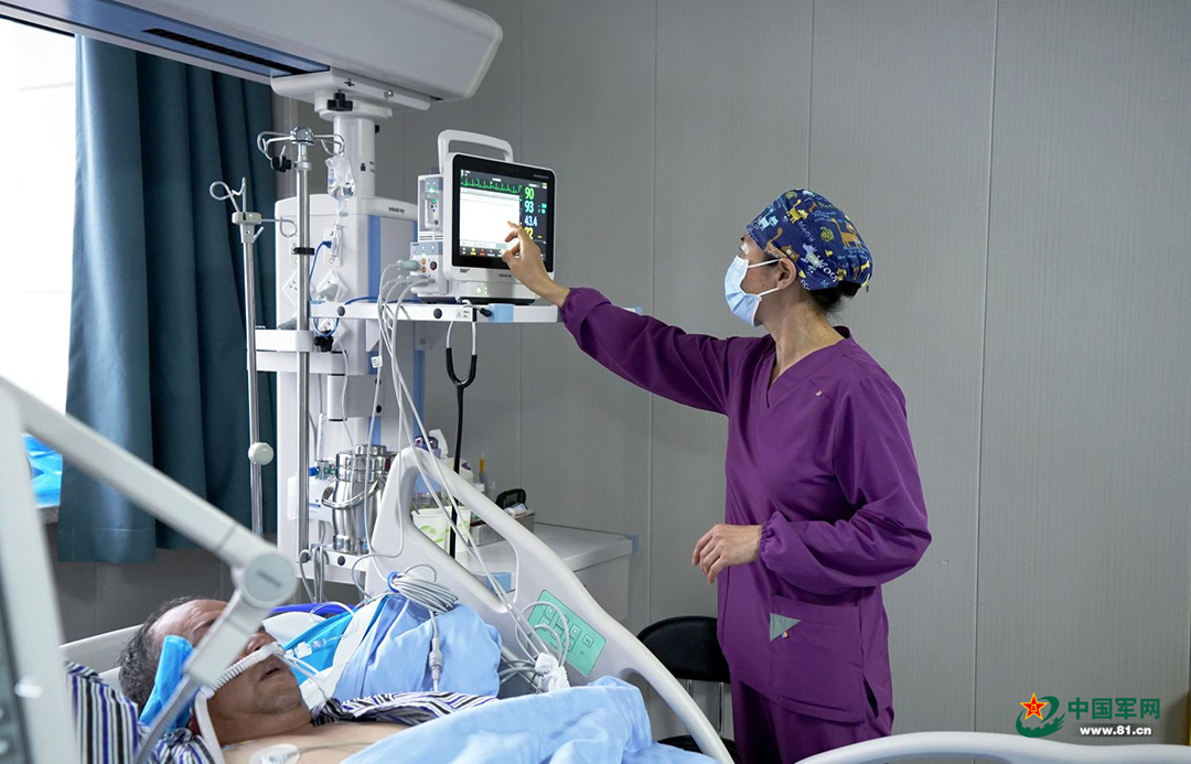 張瑛查看患者監(jiān)測儀器數(shù)據(jù)。中國軍網(wǎng)記者 林詩清 攝