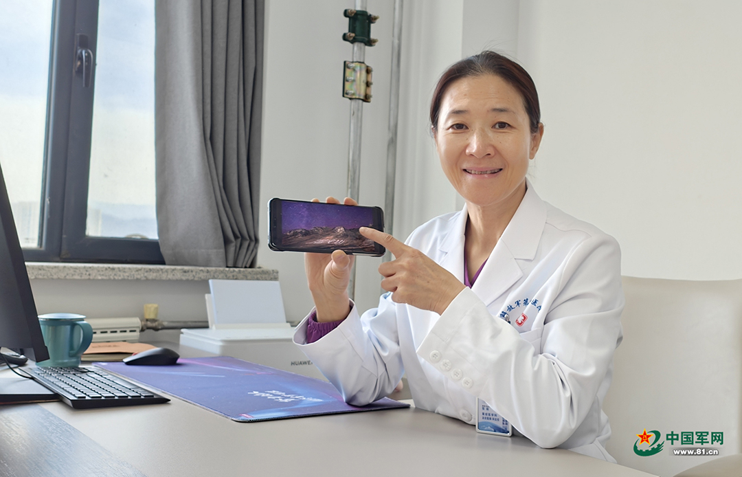 高原純凈的夜空能看到最閃耀的星星。聯(lián)勤保障部隊第941醫(yī)院重癥醫(yī)學(xué)科主任張瑛的手機壁紙,就是一張高原雪山與星空交映的美景——那是秋迪儉革拉哨所一名戰(zhàn)士特意拍下來發(fā)給張瑛的。