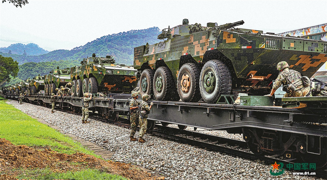 盛夏,陸軍某旅在南部戰(zhàn)區(qū)某調(diào)度中心協(xié)調(diào)下,組織遠(yuǎn)程機(jī)動(dòng)訓(xùn)練。圖為官兵正在進(jìn)行裝載。曾慶豐攝