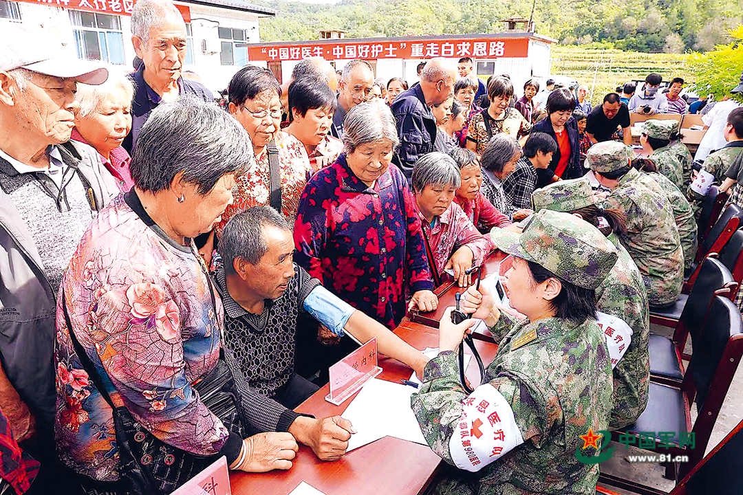 聯(lián)勤保障部隊(duì)第980醫(yī)院“白求恩醫(yī)療隊(duì)”在太行山革命老區(qū)巡診。 張彬楠 攝