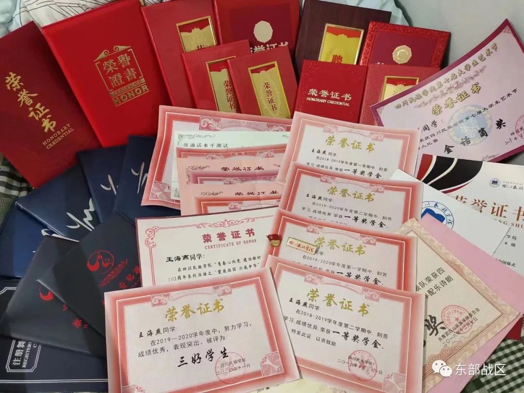 ▲王海燕的獲獎證書及獎學金。