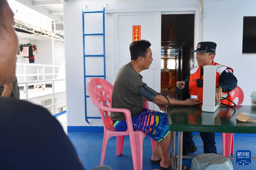 3月4日,海警三都艦執(zhí)法員為附近海域漁民提供醫(yī)療服務。