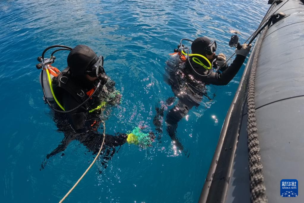 3月1日,海警三都艦執(zhí)法員在南海某海域組織潛水訓練。