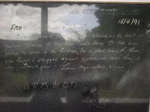 這是瓊·尤恩的外孫女莎娜在1991年回訪位于安徽省宣城市涇縣云嶺鎮(zhèn)的新四軍軍部舊址時留下的感言,已被鐫刻在新四軍軍部(司令部)舊址內。感言中寫道:“感謝讓我們有機會參觀云嶺新四軍紀念館。能短暫追隨那些多年前為反抗壓迫而戰(zhàn)斗的英雄足跡,我們深感榮幸。謝謝?!?新華社記者 郭晨 攝