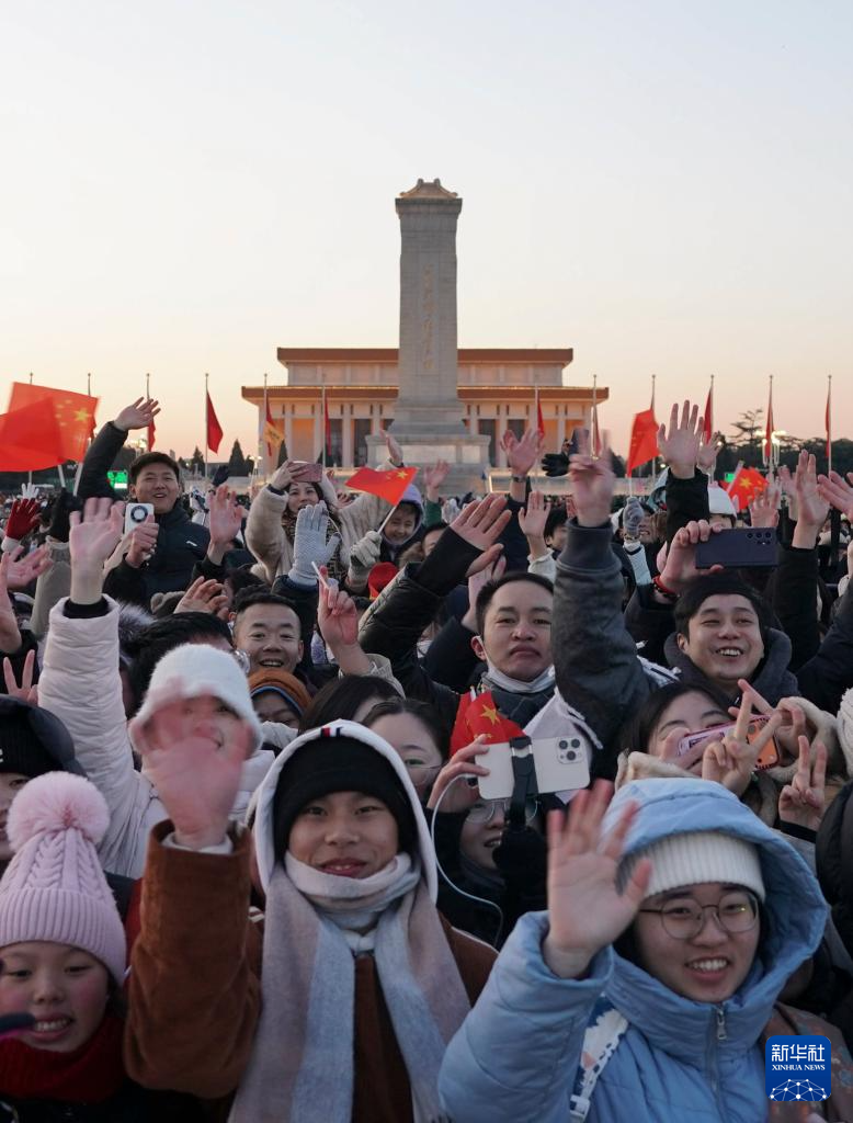 2026年1月1日清晨,北京天安門廣場舉行隆重的升國旗儀式。這是觀眾在升旗儀式結(jié)束后歡呼。