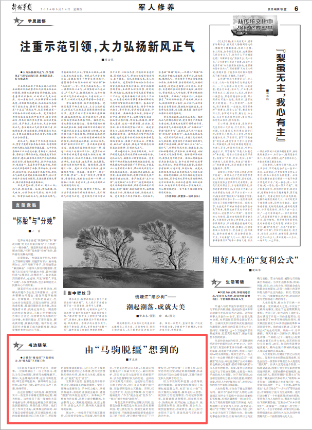 由這匹脫韁之馬的墜崖,聯(lián)想到現(xiàn)實中一些黨員干部腐化墮落的過程,頗為相似。這些黨員干部一度被作為苗子選拔培養(yǎng),磨礪出過硬能力素質(zhì)后被放到重要崗位,并肩負重大職責。他們在工作風生水起、成果頻出的同時,卻不能自覺接受監(jiān)督,甚至錯誤地把上級的監(jiān)督看成是對自己的不信任,把同級的監(jiān)督看成是跟自己過不去,把下級的監(jiān)督看成是對自己不尊重,想方設(shè)法擺脫紀律的約束,致使權(quán)力失控、腐化變質(zhì),由“能吏”變?yōu)椤柏澒佟薄?/p>