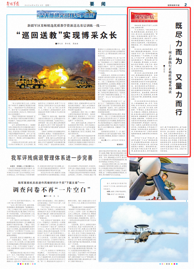 盡力而為,就是恪盡職守、實(shí)干擔(dān)當(dāng),強(qiáng)調(diào)發(fā)揮主觀能動(dòng)性。盡力而為重在“盡力”,老一輩革命家謝覺(jué)哉同志曾指出:“‘十分指標(biāo),十二分措施,二十四分干勁’,任何困難,都在他們面前低頭了。”事實(shí)證明,苦干實(shí)干、積極進(jìn)取,事不避難、義不逃責(zé),把力用足用到位,才能干出一番業(yè)績(jī)。干事創(chuàng)業(yè),首先要有干勁??梢哉f(shuō),充足的干勁是開(kāi)創(chuàng)新時(shí)代強(qiáng)軍事業(yè)的前提和保證。