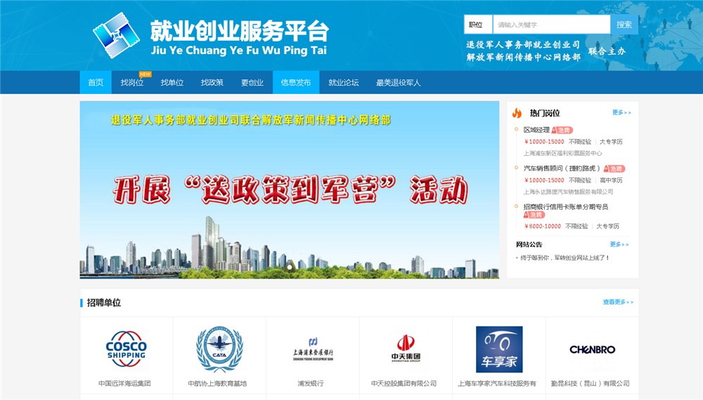 強軍網(wǎng)就業(yè)創(chuàng)業(yè)服務平臺首頁截圖